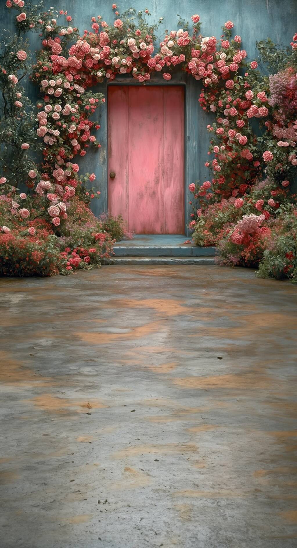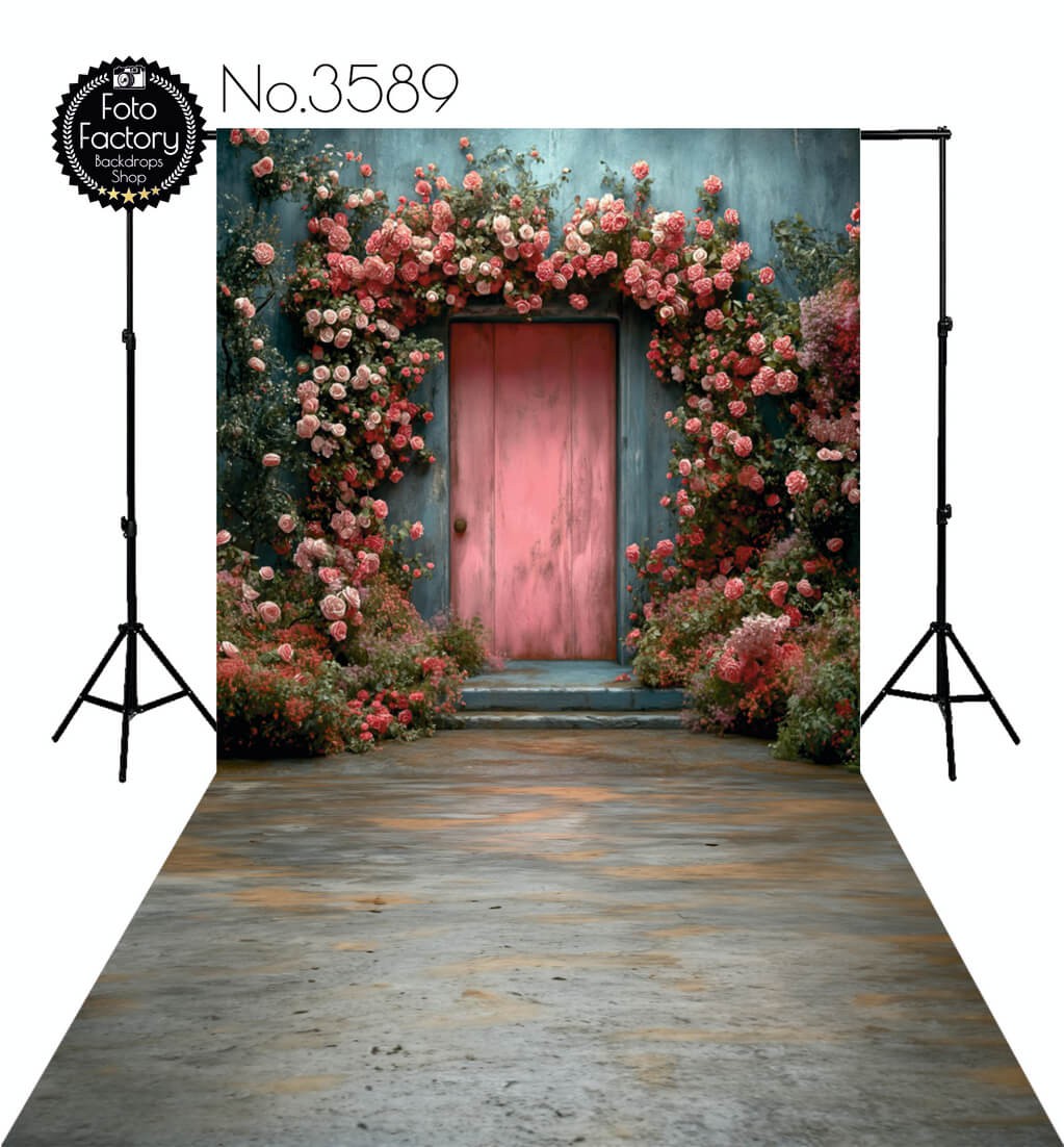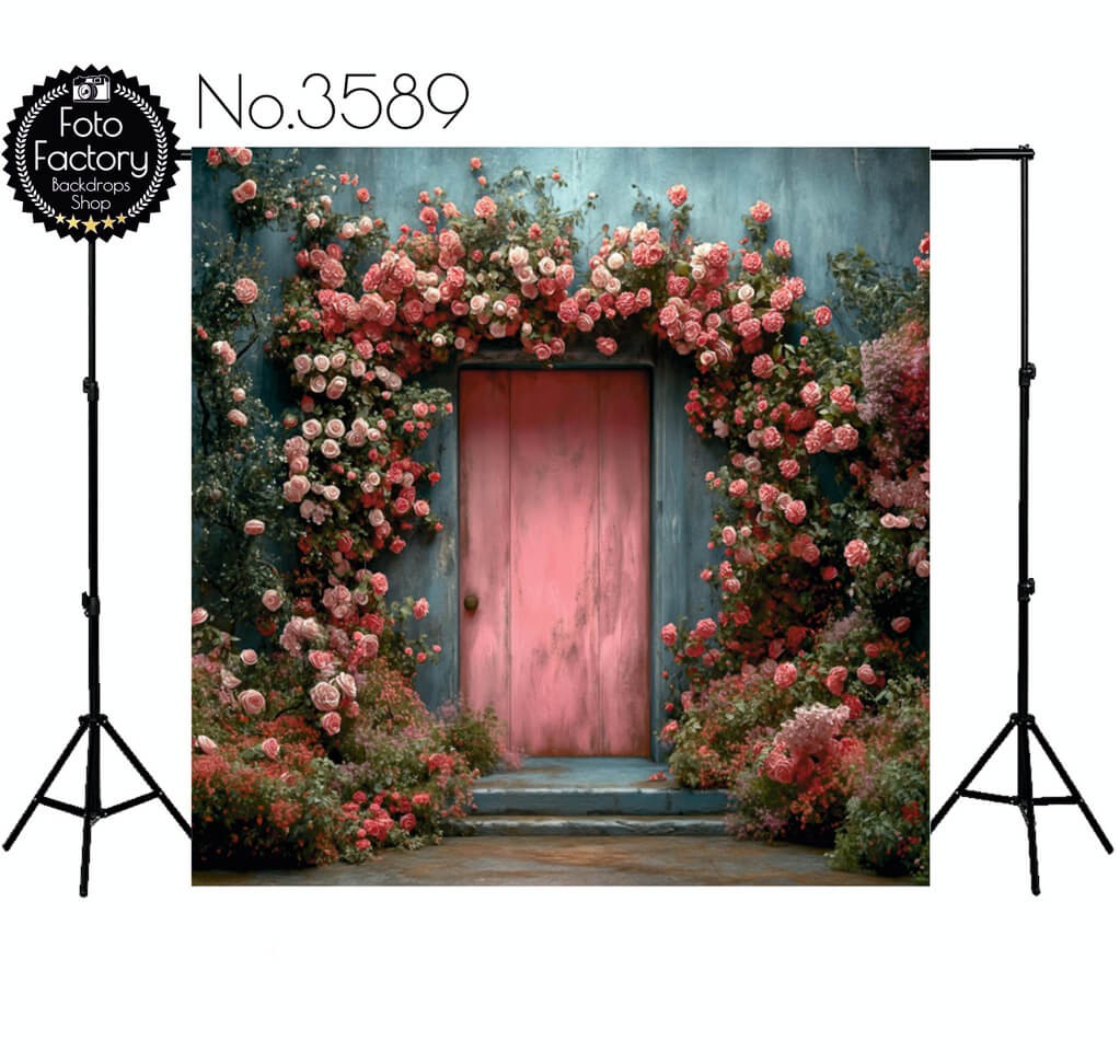 Backdrop pink door flowers 3589