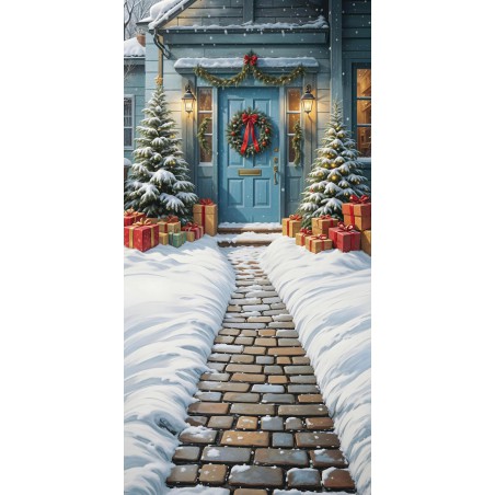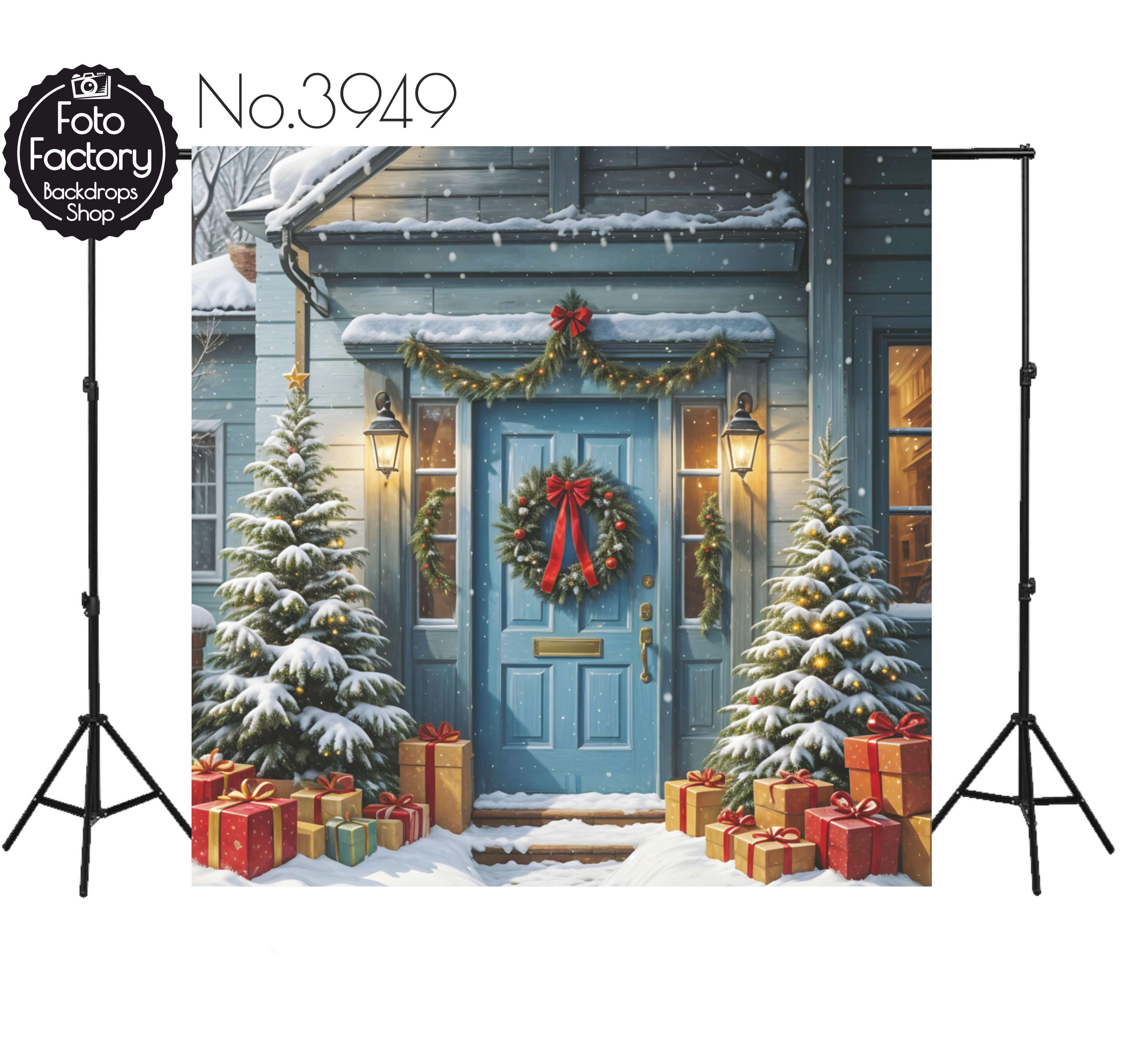 Backdrop Christmas blue door christmas decorations 3949