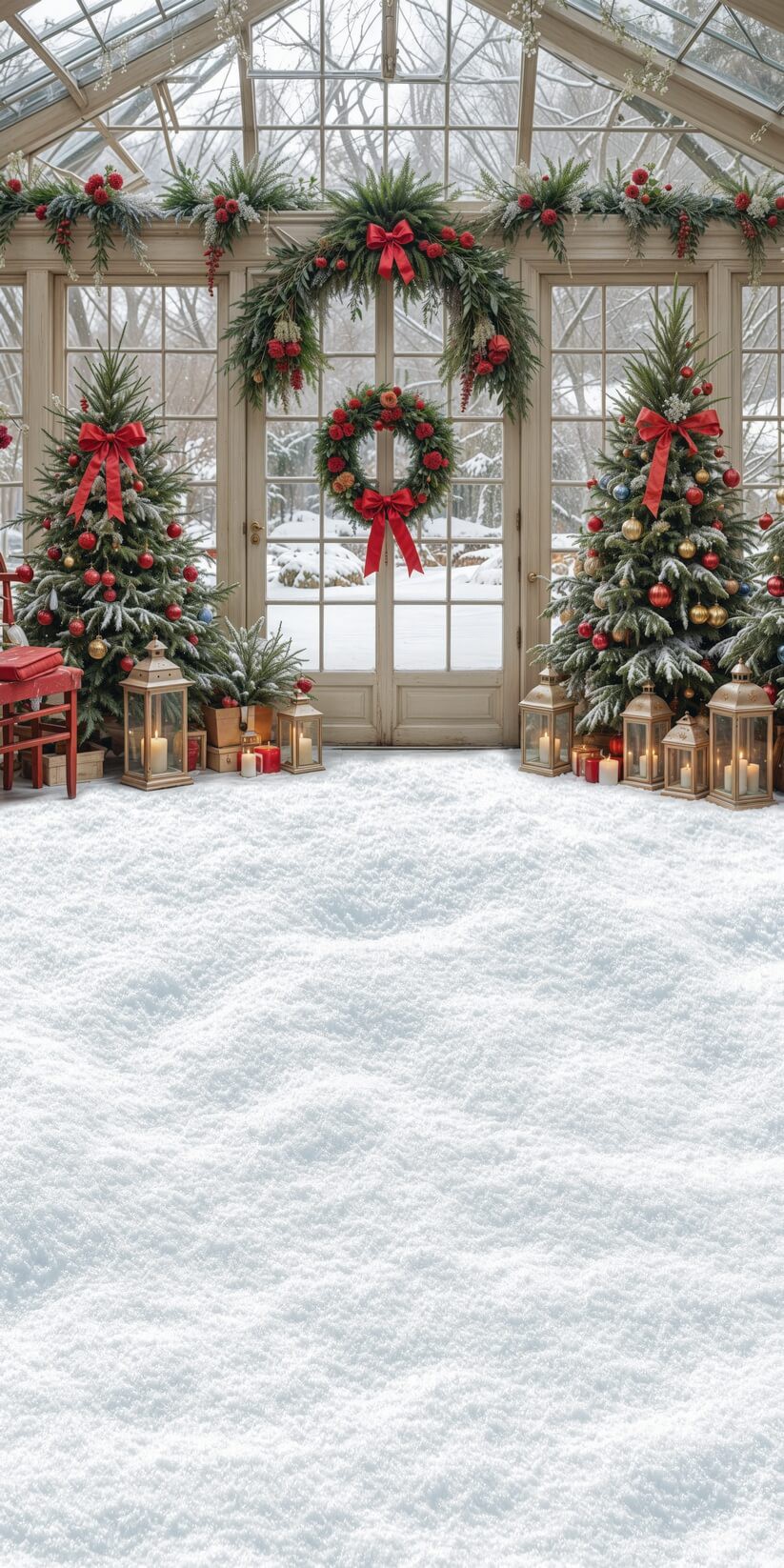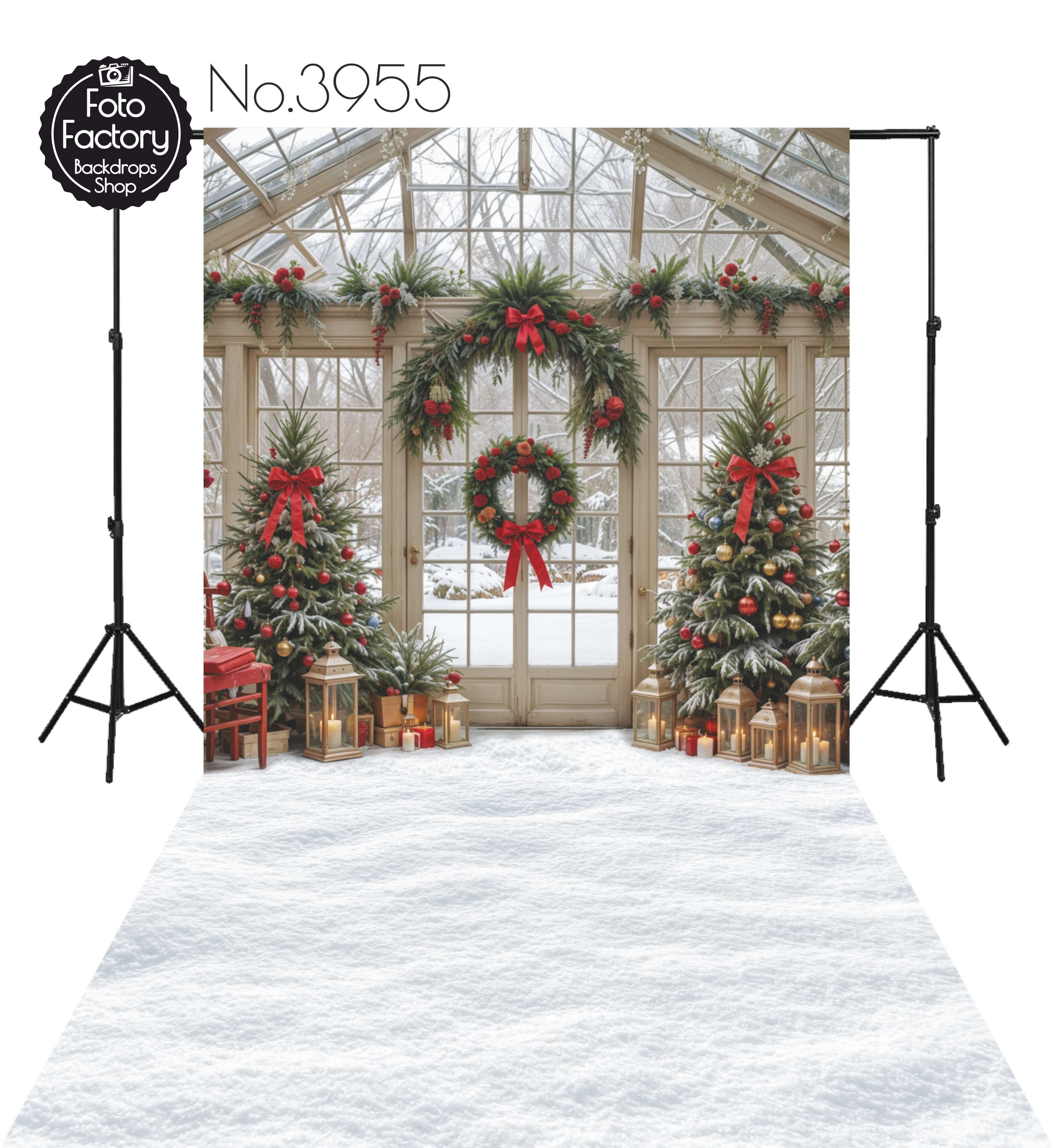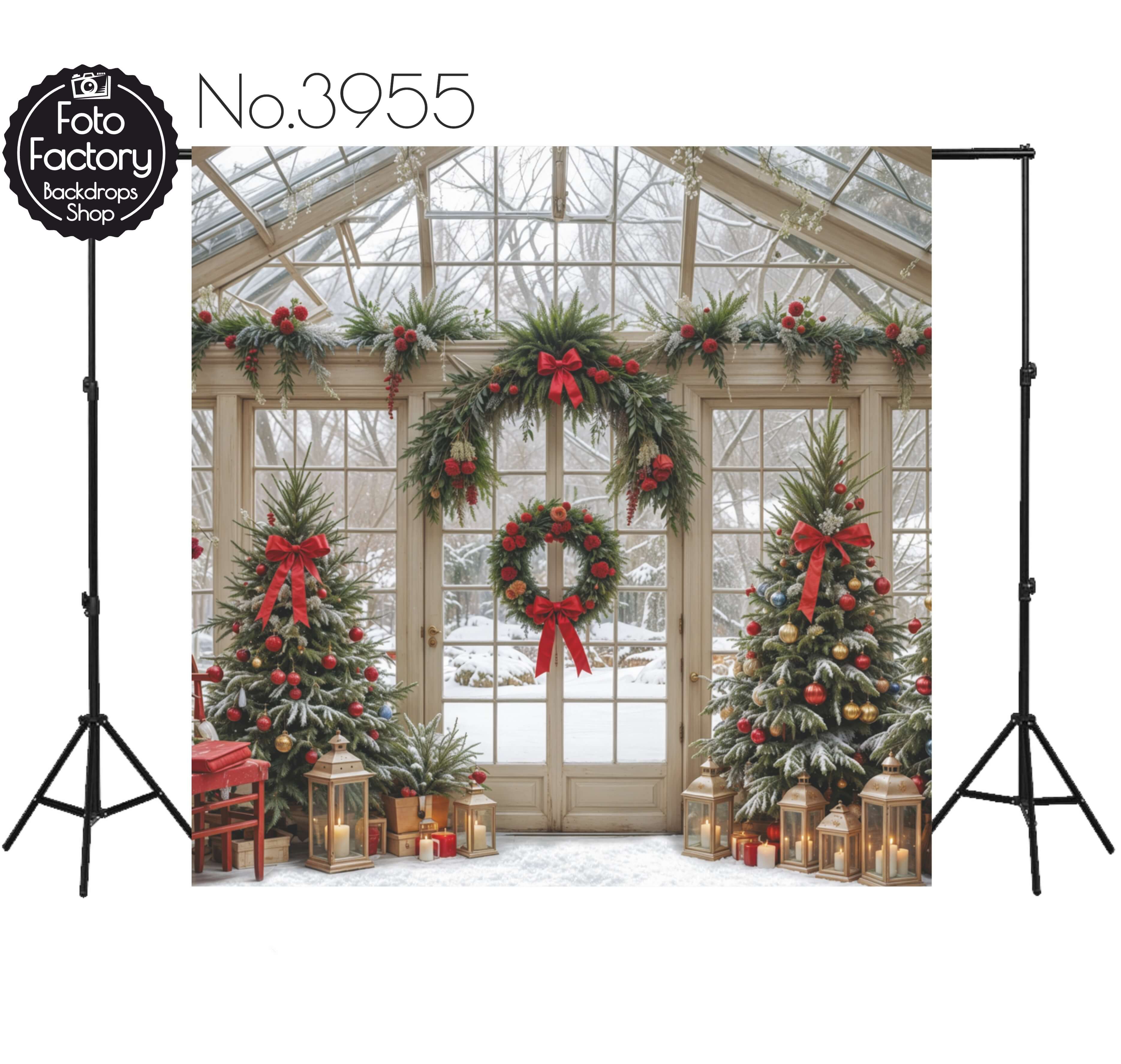Tło Fotograficzne Boże Narodzenie przeszklona ściana choinki świąteczne ozdoby 3955