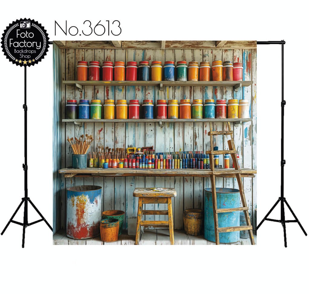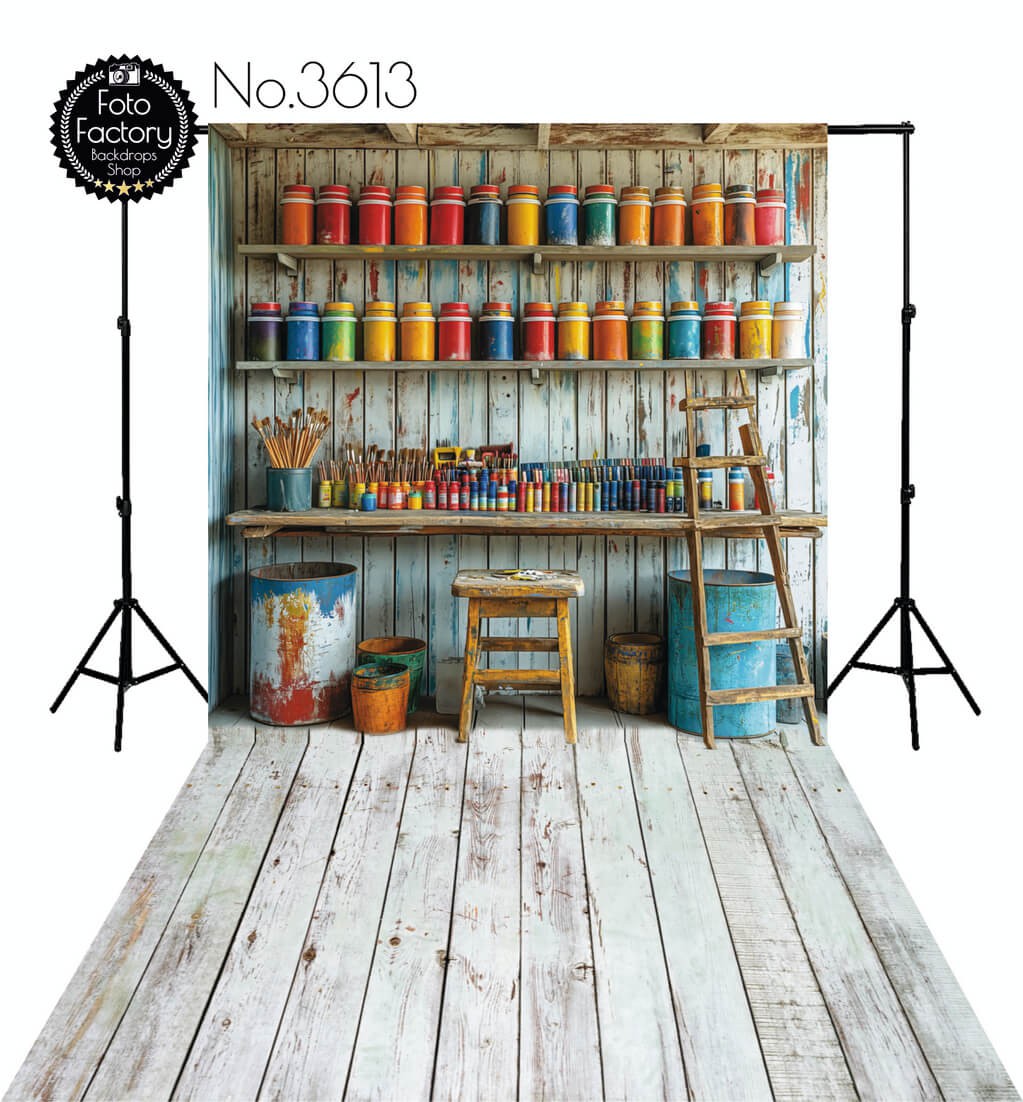 Tło Fotograficzne drewniana pracownia malarska 3613