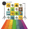 - - do fotografii dziecięcej: kolorowe i radosne motywy, np. bajkowe postacie, zwierzątka, kwiaty, tęcza, balony, chmurki, plaża lub las.
