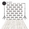 15 cm białego winylu/tkaniny na górze tła. Przystosowane do montażu za pomocą klipsów lub do systemów łańcuszkowych.